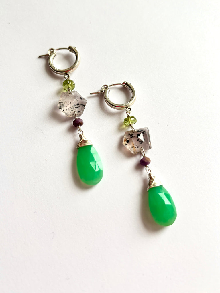 These carbon flecked rose quartz are some of my hoard of favorites, as are the long chrysoprase briolettes.