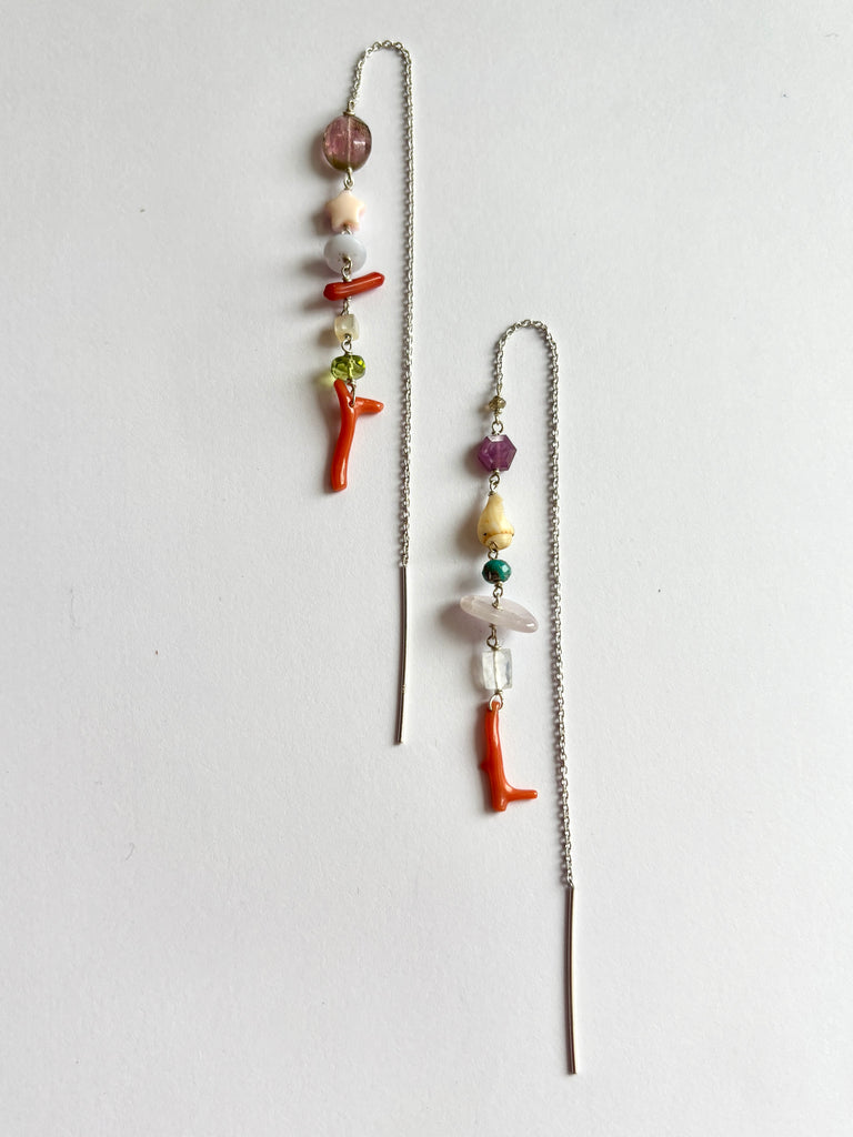 Inspired by a fantasy Italian vacation and what might be in my pockets at the end of the perfect day at the beach. Each earring is different but well balanced to match its mate. No two pairs are exactly alike.